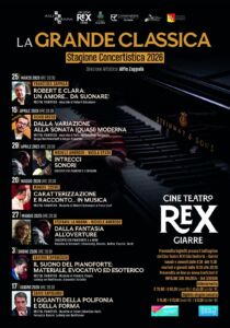Dal 25 marzo al 17 giugno 2026 lo storico e rinnovato Cine Teatro Rex di Giarre si apre al genere colto della musica classica “linguaggio artistico per eccellenza che favorisce l’ascolto e permette ai fruitori di ogni età di attingere all’essenza più profonda del vivere”