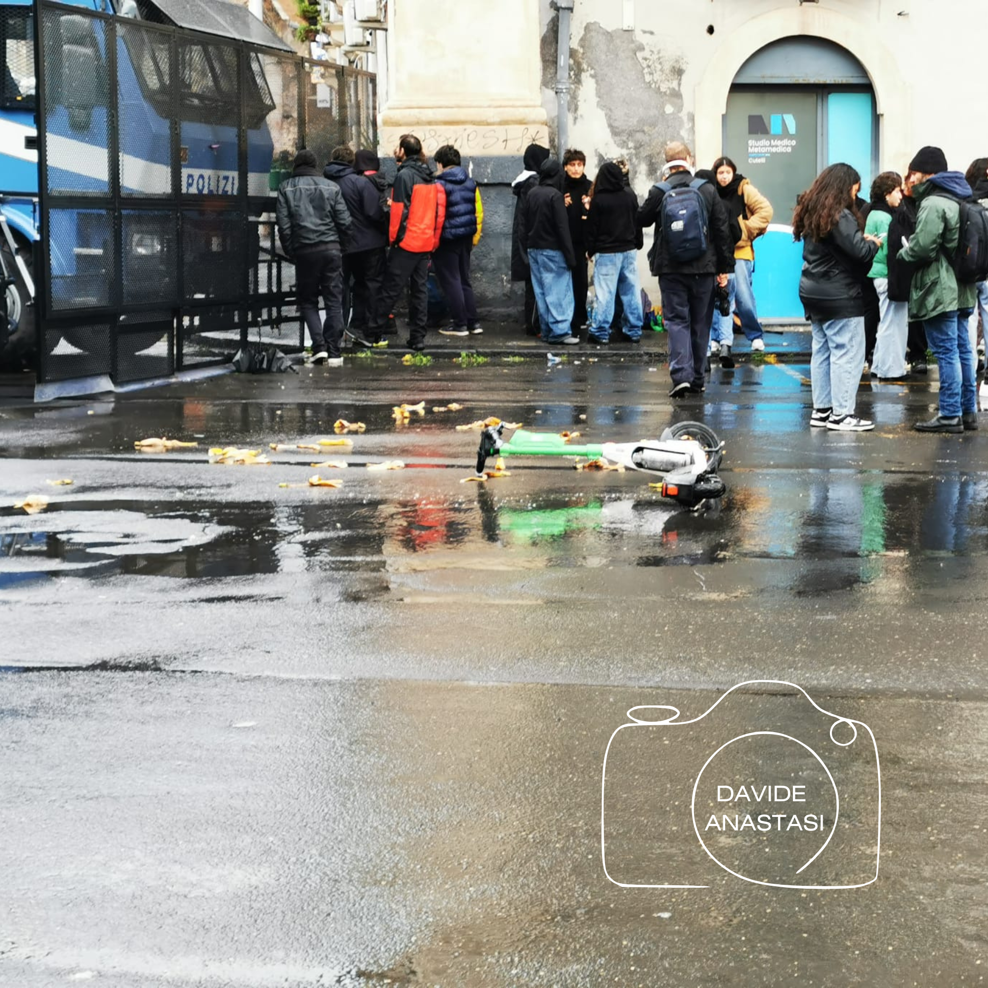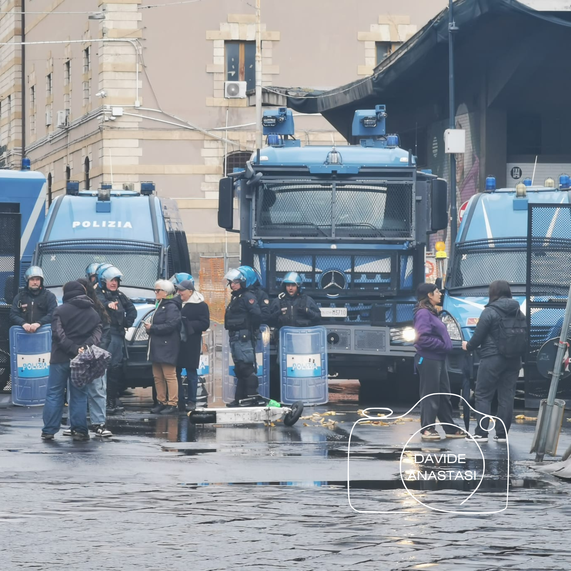 Subito dopo è scattata la messa in sicurezza della zona. Da via Monsignor Ventimiglia e lungo tutto il perimetro di Piazza Pietro Lupo è stata installata una recinzione metallica che impedisce l’accesso. L’area risulta completamente interdetta e presidiata da un imponente dispositivo di sicurezza: sul posto è presente la polizia, anche in assetto antisommossa, con barriere già innalzate.